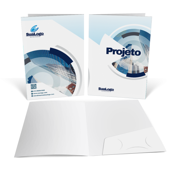 Pasta impressa em alta qualidade de material resistente com bolsa interna.